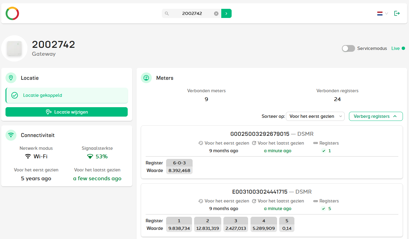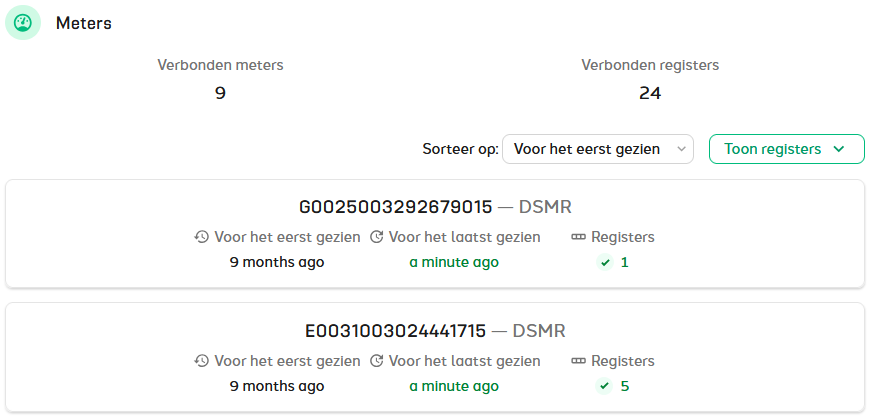 - Voor het eerst gezien: Het moment waarop de meter zich voor het eerst heeft gemeld.
