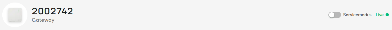 Links bovenin verschijnt vervolgens het geselecteerde apparaat. Rechtsboven is te zien of de servicemodus is ingeschakeld. In servicemodus wordt de communicatiefrequentie tijdelijk verhoogd: in plaats van elke 15 of 60 minuten communiceert de meetset tijdelijk elke minuut. Bij het openen van de pagina wordt de servicemodus standaard geactiveerd.