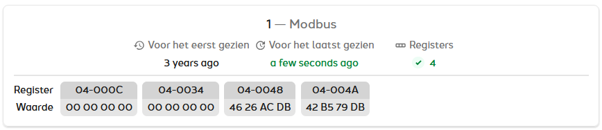 In de uitgebreide weergave worden de afzonderlijke registers weergegeven, inclusief de laatst ontvangen waarde.